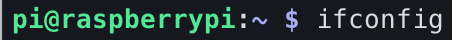 ifconfig 를 사용하여 라즈베리 파이의 내부 ip 주소를 알 수 있습니다.