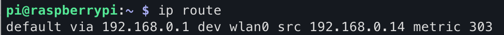 라즈베리 파이에서 ip route 명령어를 입력하면 라우터 정보가 나옵니다.