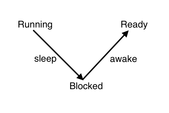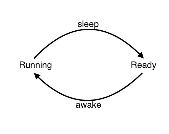 잠이듬 -> 깨어남 -> 시간확인 -> 다시잠 -> 깨어남 -> 시간확인 -> ... -> 깨어남 -> 시간확인(일어날시간) -> 깨어남이러한 문제가 발생하는 내면을 살펴보면 스레드의 상태가 running state 와 ready state 를 반복함을 볼 수 있다. running state 에서 sleep 명령을 받은 스레드는 ready state 가 되어 ready queue 에 추가되고 ready queue 에 있는 스레드들은 자신의 차례가 되면 일어날 시간이 되었는지에 상관없이 깨워져 running state 가 된다. 이렇게 running state 가 된 스레드는 자신이 일어날 시간이 되었는지 확인하고 아직 일어날 시간이 안 됐다면 다시 ready state 로 전환한다.