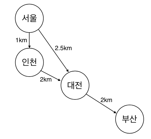 서울에서 부산까지 최단거리로 가는 방법은 서울->대전->부산의 경로로 4.5km 이지만, 이 상황에 탐욕적 기법을 적용하면 알고리즘은 각 단계에서 최적해, 즉 가장 가까이 있는 도시로 이동하여 서울->인천->대전->부산의 경로를 선택하고 이는 전체 문제의 최단거리가 아니게 된다.